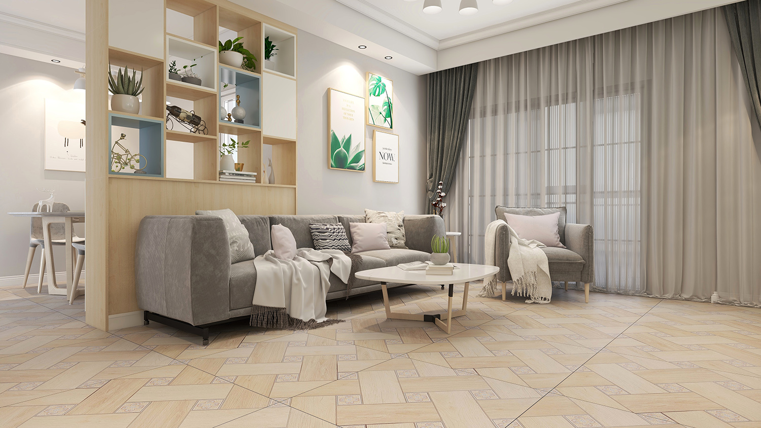 8LJC129 棕白双木花格木纹